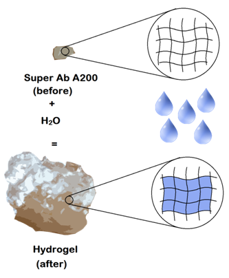 Superab A200 est un polymère synthétique, capable d'absorber, conserver et libérer l'eau en grande quantité. Superab A200 a la capacité d'absorber plus de 200 fois sa masse d'eau. Ce granulé augmente de volume lorsque le polymère entre en contact avec de l'eau. L'eau absorbée est maintenue dans la structure moléculaire par le principe de l'Osmose.